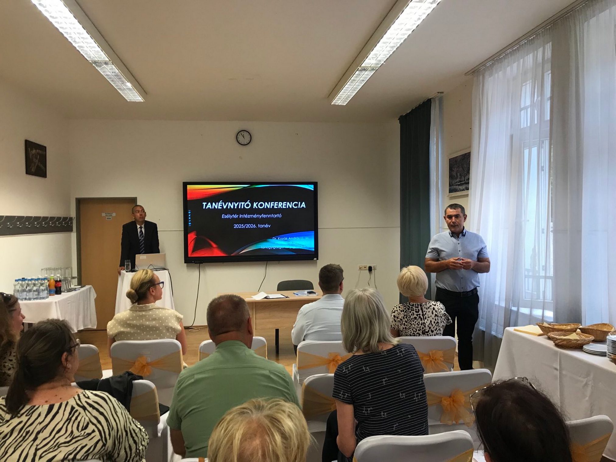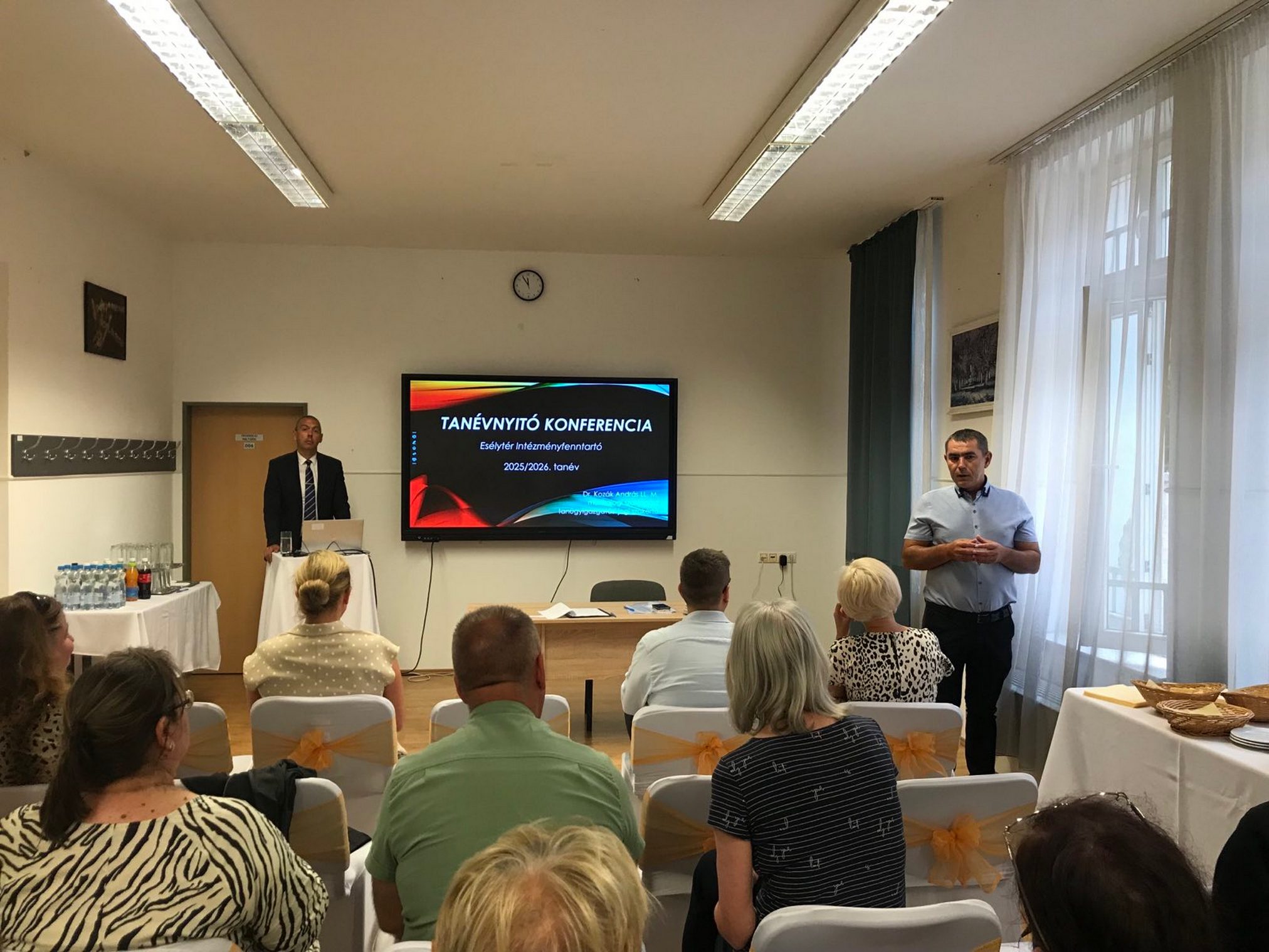 Az Esélytér Intézményfenntartó tanévnyitó konferenciára invitálta partneriskoláinak vezetőit. Az eseményen részt vett Dr. Kozák András tanügyigazgatási jogi szakértő, aki összefoglalta a 2025/2026. tanév indításával kapcsolatos feladatokat és rámutatott a köznevelést érintő jogszabályok változásaira. Az előadást követő interaktív modul keretében tanügyi és munkajogi kérdésekre kaphattak választ a konferencia résztvevői.