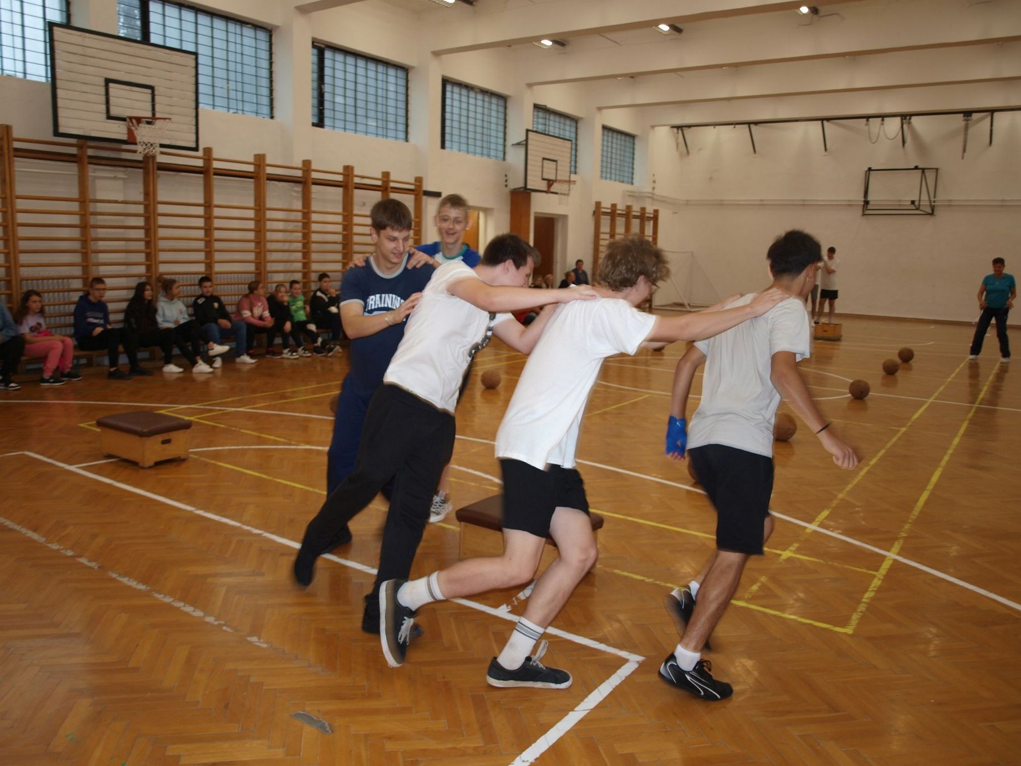 Pénteken a tornateremben folytatódtak a programok. Az osztályok izgalmas sorversenyeken mérhették össze erejüket és ügyességüket, miközben az osztályok hatalmas szurkolással buzdították társaikat. A versenyek után egy látványos flash-mob bemutató következett, amelybe a diákok is aktívan bekapcsolódhattak. A délelőtt zárásaként egy fergeteges Just Dance party vette kezdetét, ahol mindenki szabadon táncolhatott és kikapcsolódhatott. A sok mozgásnak köszönhetően minden tanuló alaposan kifáradt, ugyanakkor rengeteg élménnyel gazdagodott. Összességében az Európai Diáksport Napja remek lehetőséget adott a közösségi élményre, a sport örömének átélésére, és a közös szórakozásra.