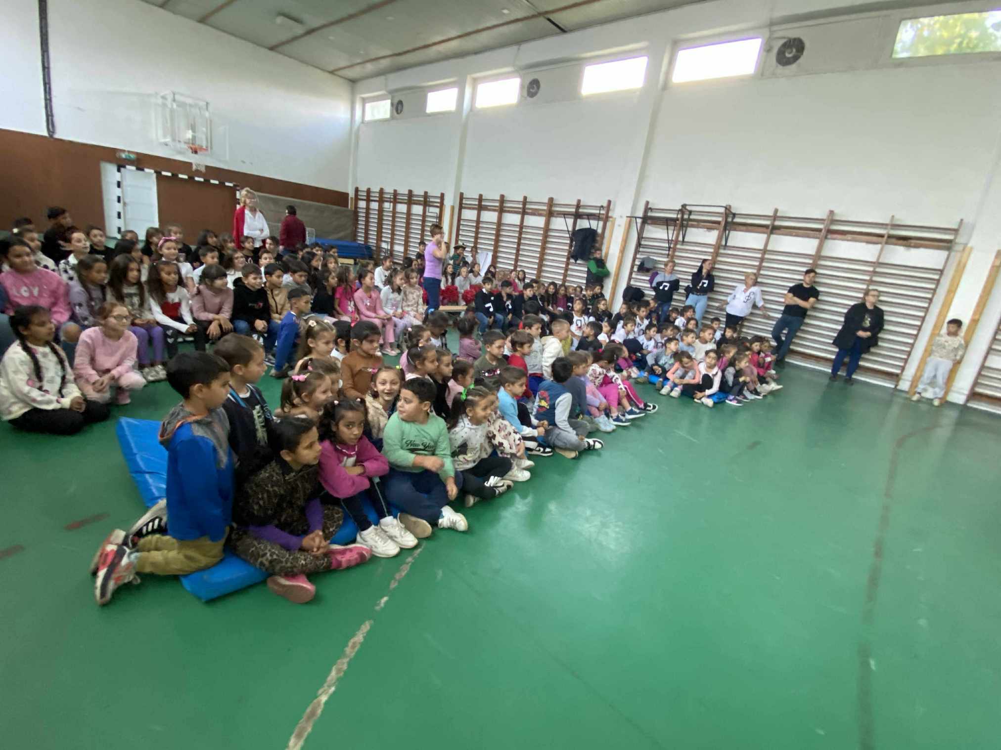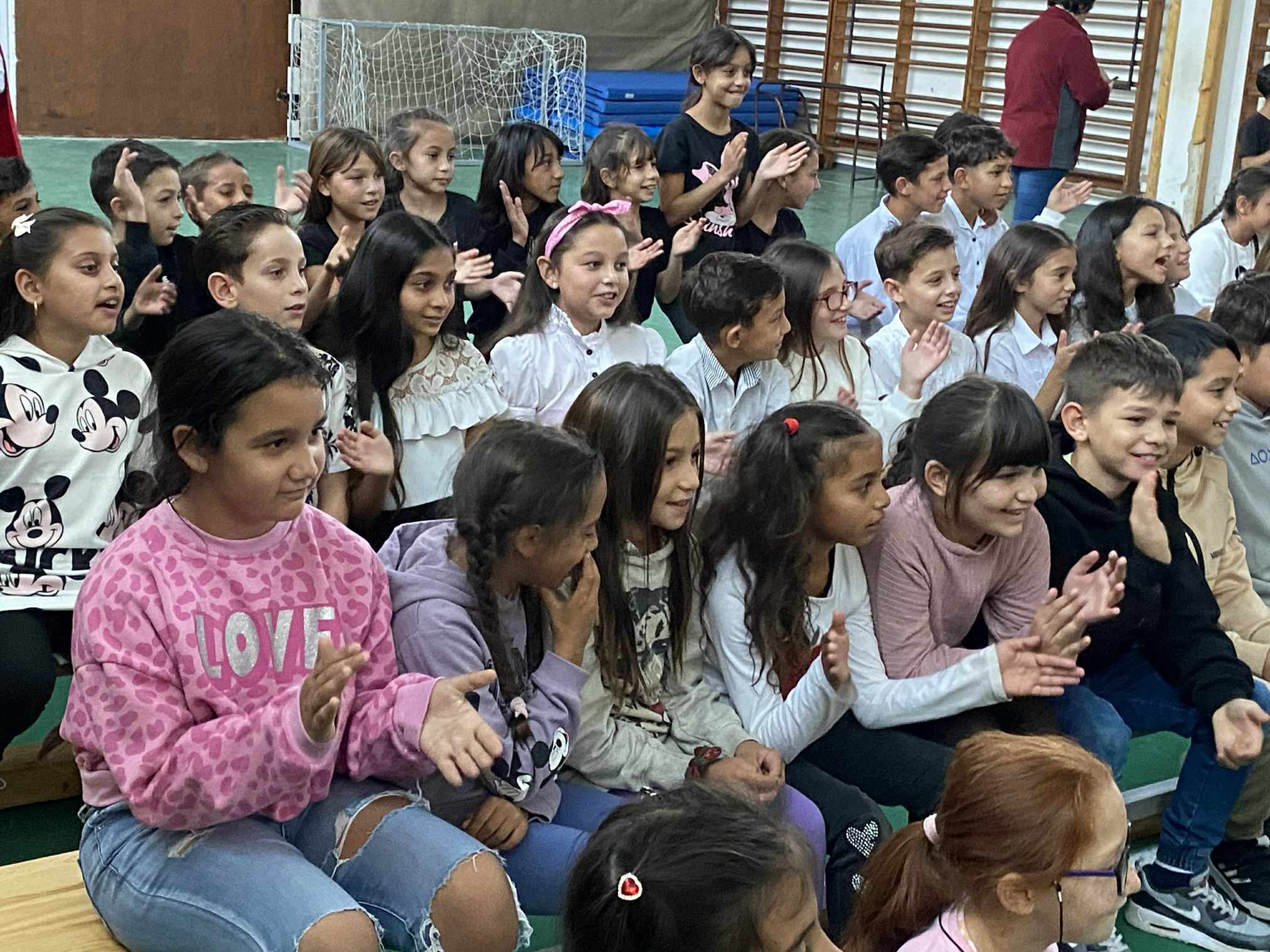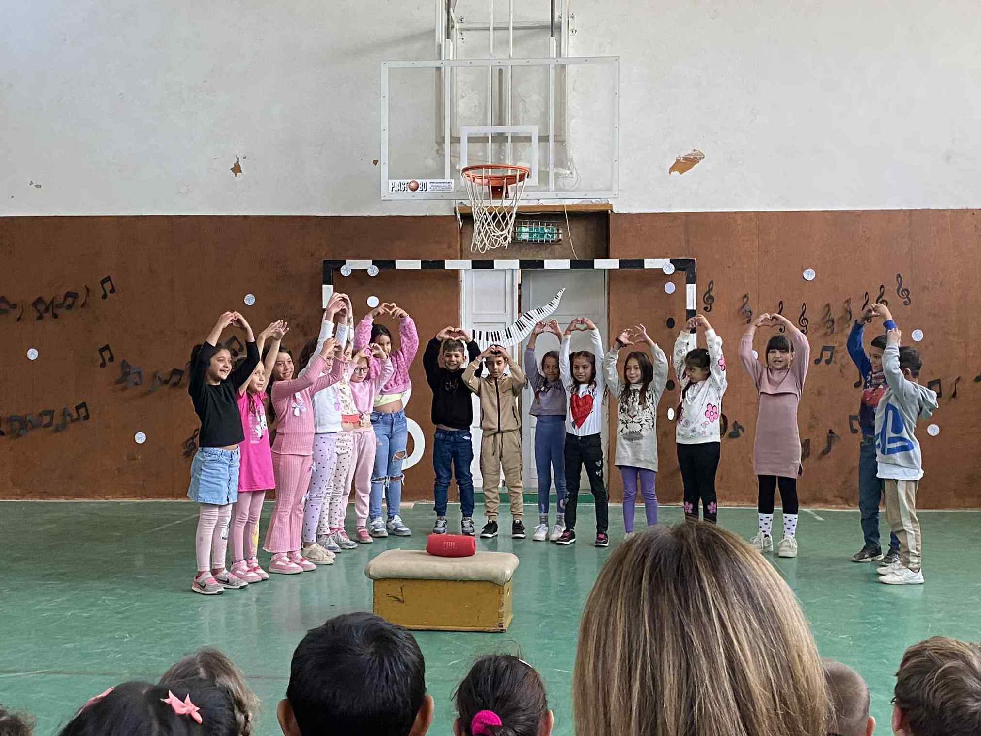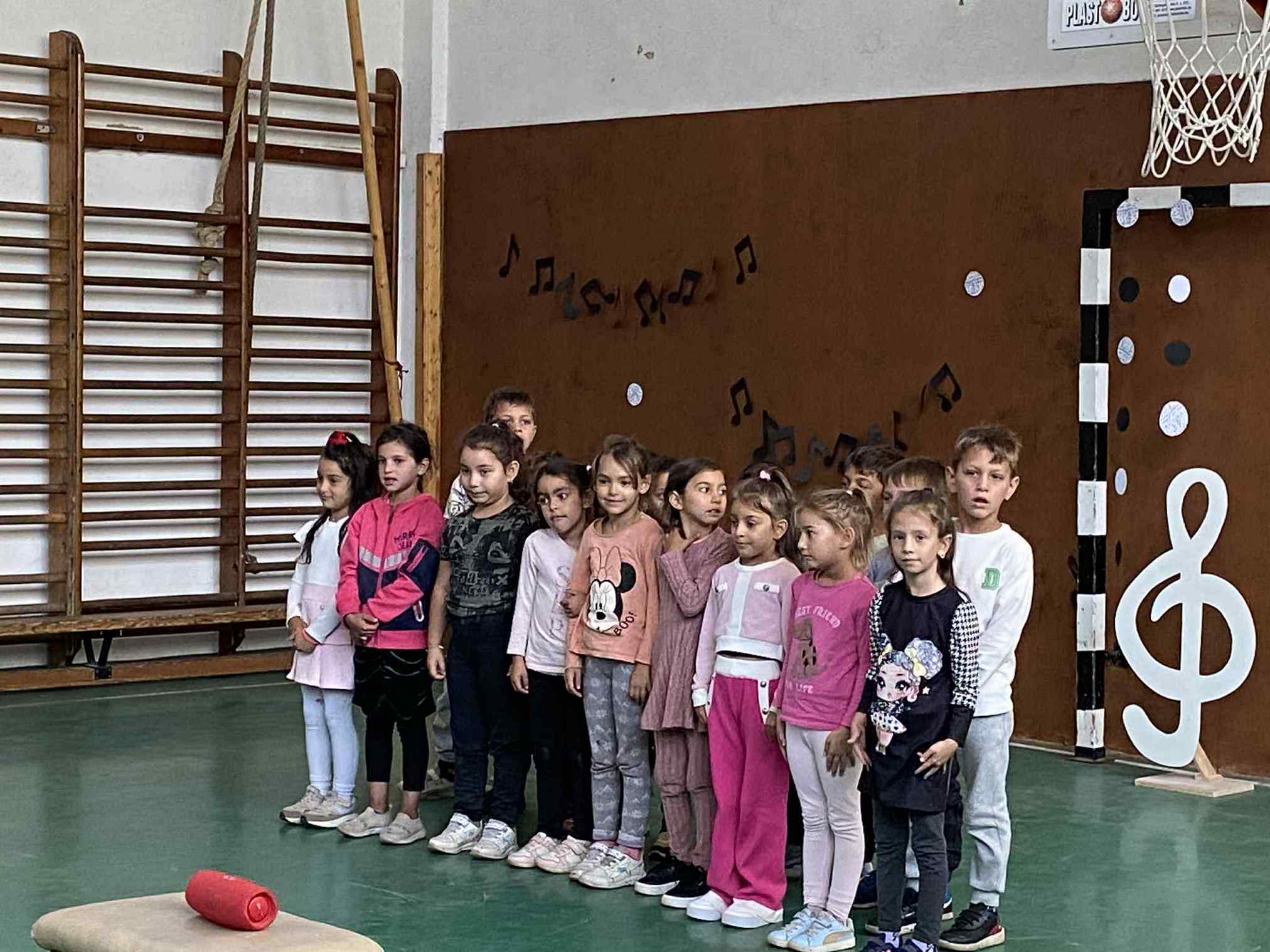A Zenei Világnap alkalmából szervezett program betegség miatt ugyan, egy héttel később valósult meg, de a várakozás csak fokozta a lelkesedést: a tornaterem ezen a napon megtelt dallal, mosollyal és gyermeki örömmel. A rendezvényt a „Ha zene szól…” című közös dallal nyitotta meg az alsó tagozat, amely már az első percekben megteremtette az ünnepi, mégis felszabadult hangulatot. Ezután osztályról osztályra váltották egymást a kis „énekkarok”: minden csoport egy általuk választott dalt adott elő az eredeti zenére ráénekelve.