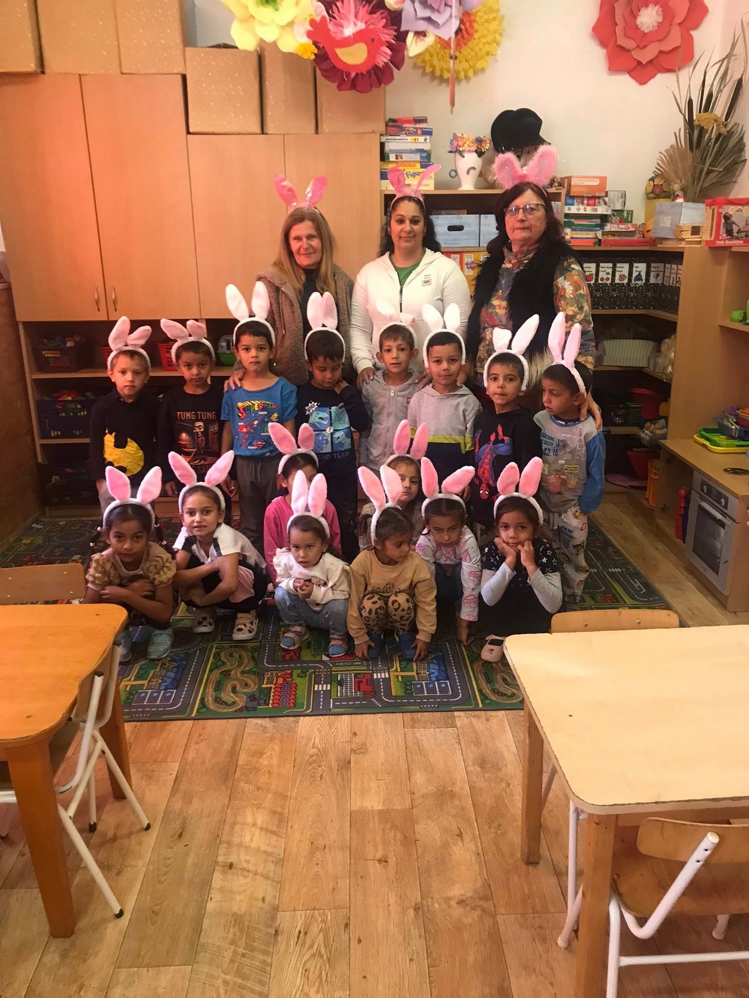 A kis ovisok körben ülve először megtekintettek néhány rövid rajzfilm mesét, a legismertebbek közül. Majd az óvónénik játékos kérdéseire adtak feleletet, melyek a mindenki által ismert mesékre, mesefigurákra vonatkoztak. Az óvoda minden felnőtt dolgozója mesefigurának öltözött. Így a gyerekek élőben találkozhattak a három kismalaccal, a vasorrú banyával, egy doktornénivel, varázslóval, Mickey egérrel, katicával, tündérrel, pillangóval és társaikkal