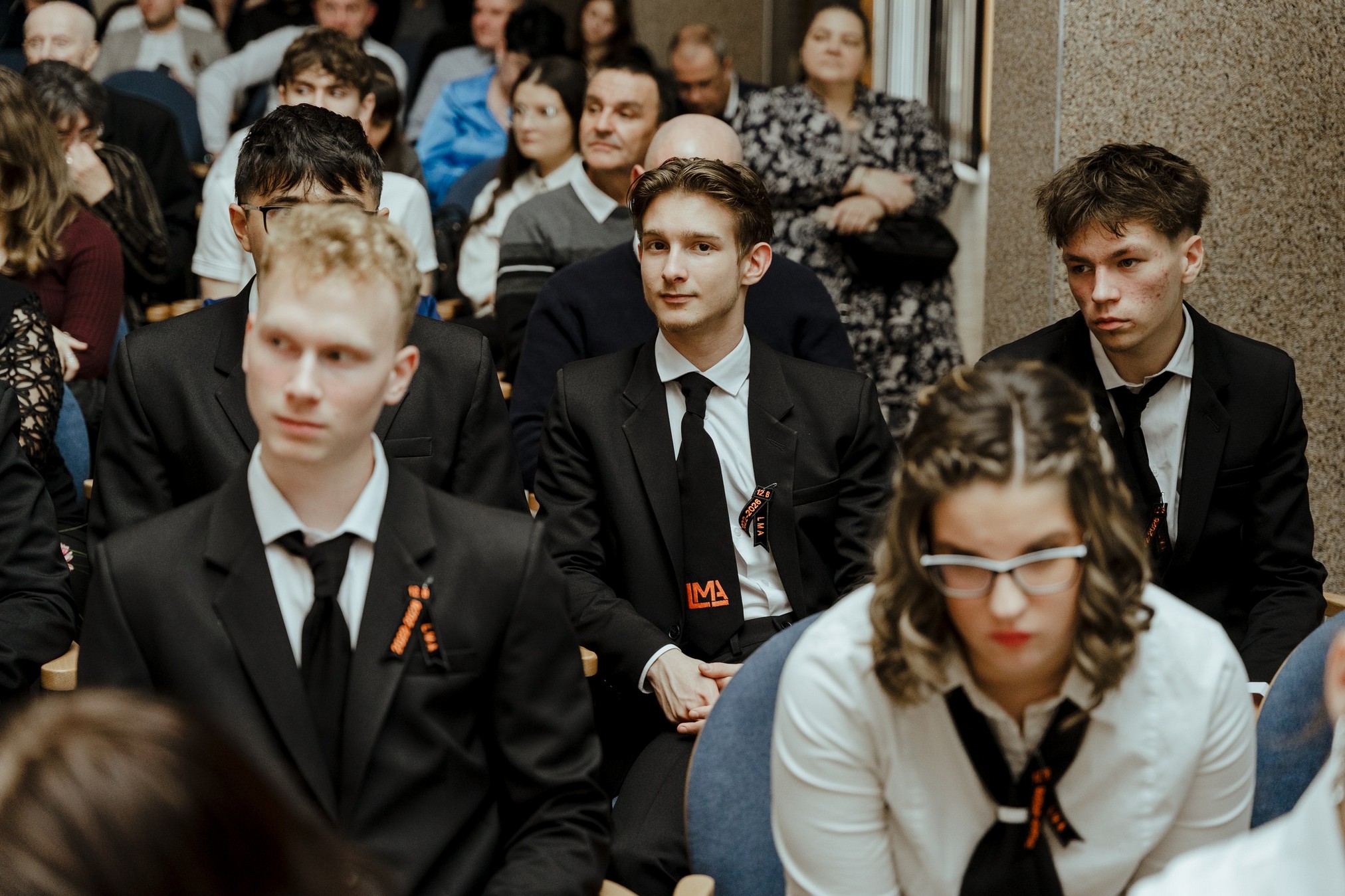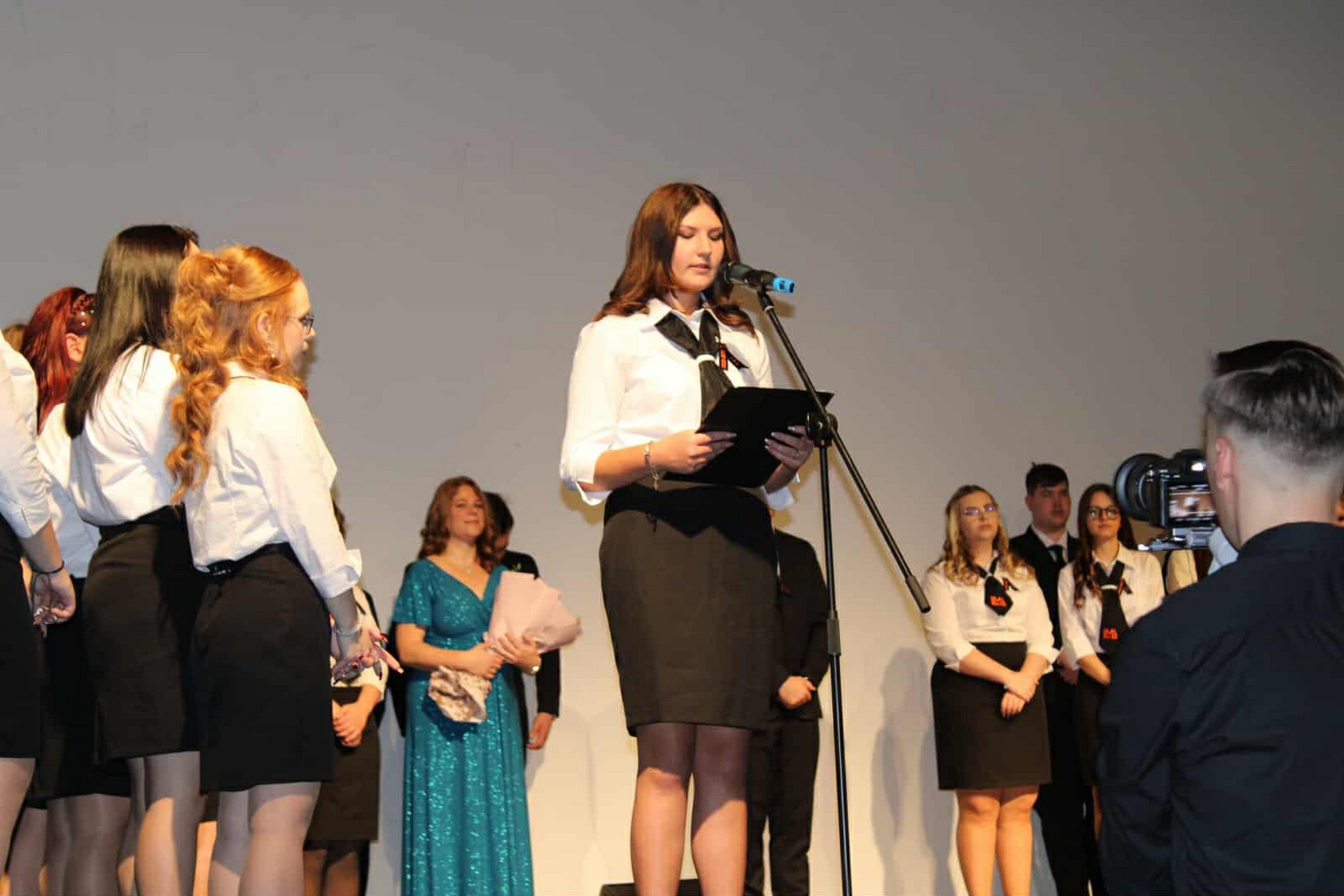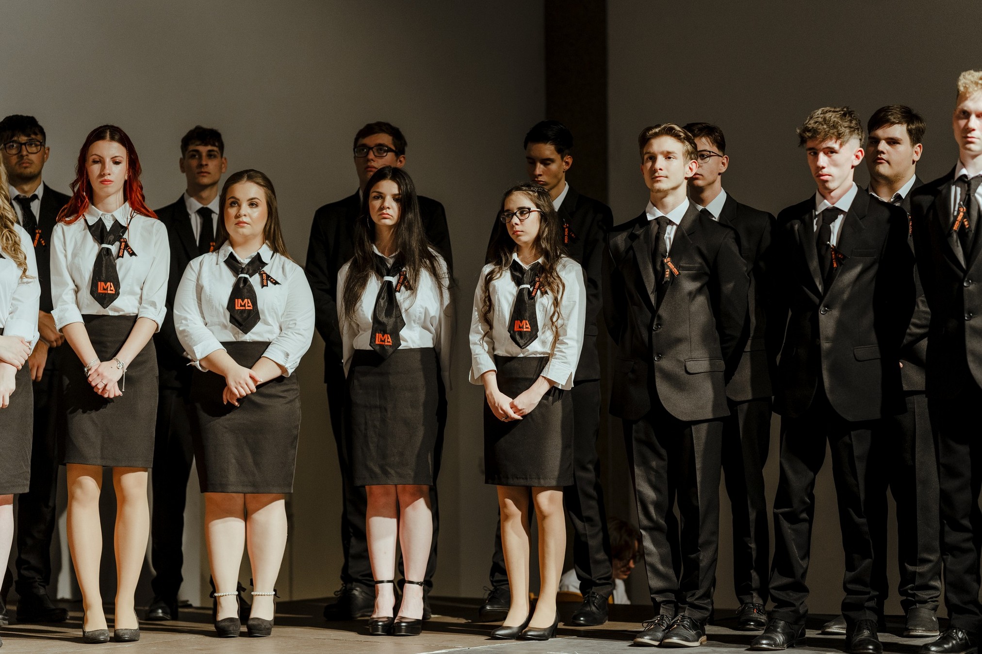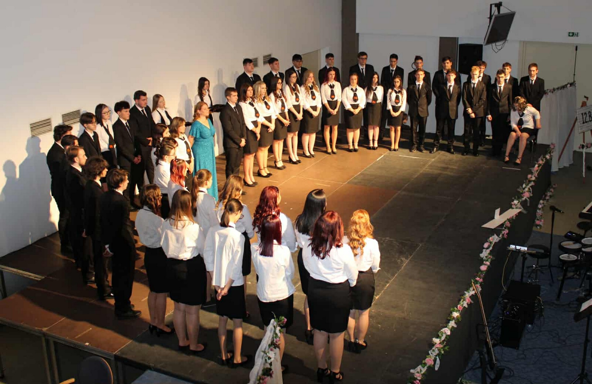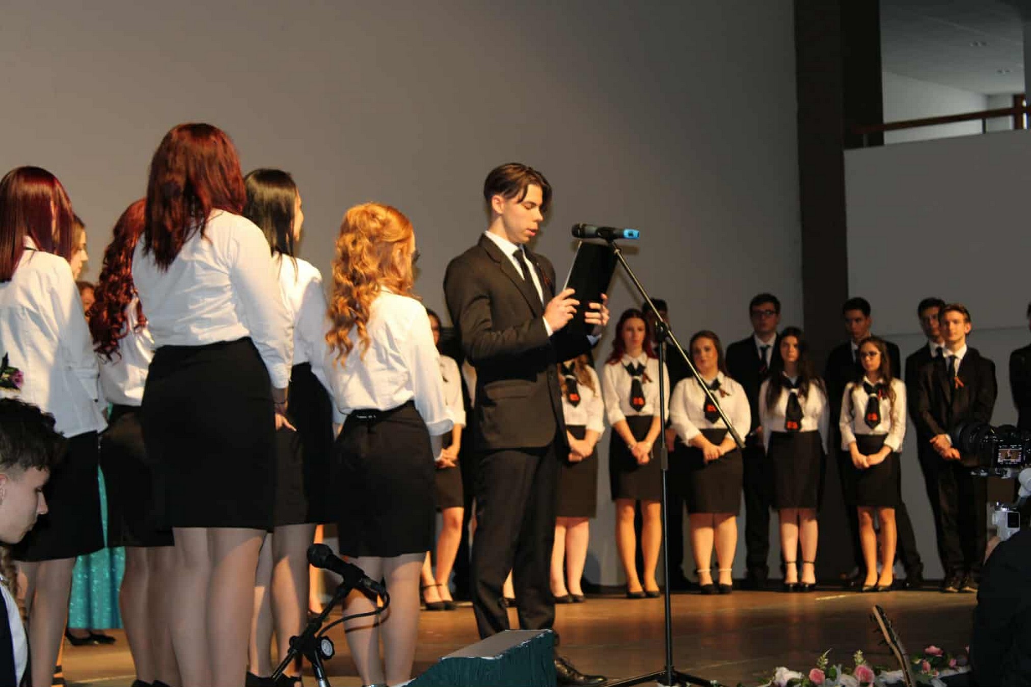 Gyönyörű, érzelemdús keringőik megalapozták az ünnepélyes hangulatot, méltó nyitányai voltak a szalagtűzésnek. A diákok megható ünnepi beszéde, osztályfőnökeik virágcsokorral való megajándékozása és az őket tanító, tanárok, vezetőség, fenntartó képviselőinek szalagtűzése mellett virággal és emlékszívvel kedveskedtek hozzátartozóiknak a 12.-esek.