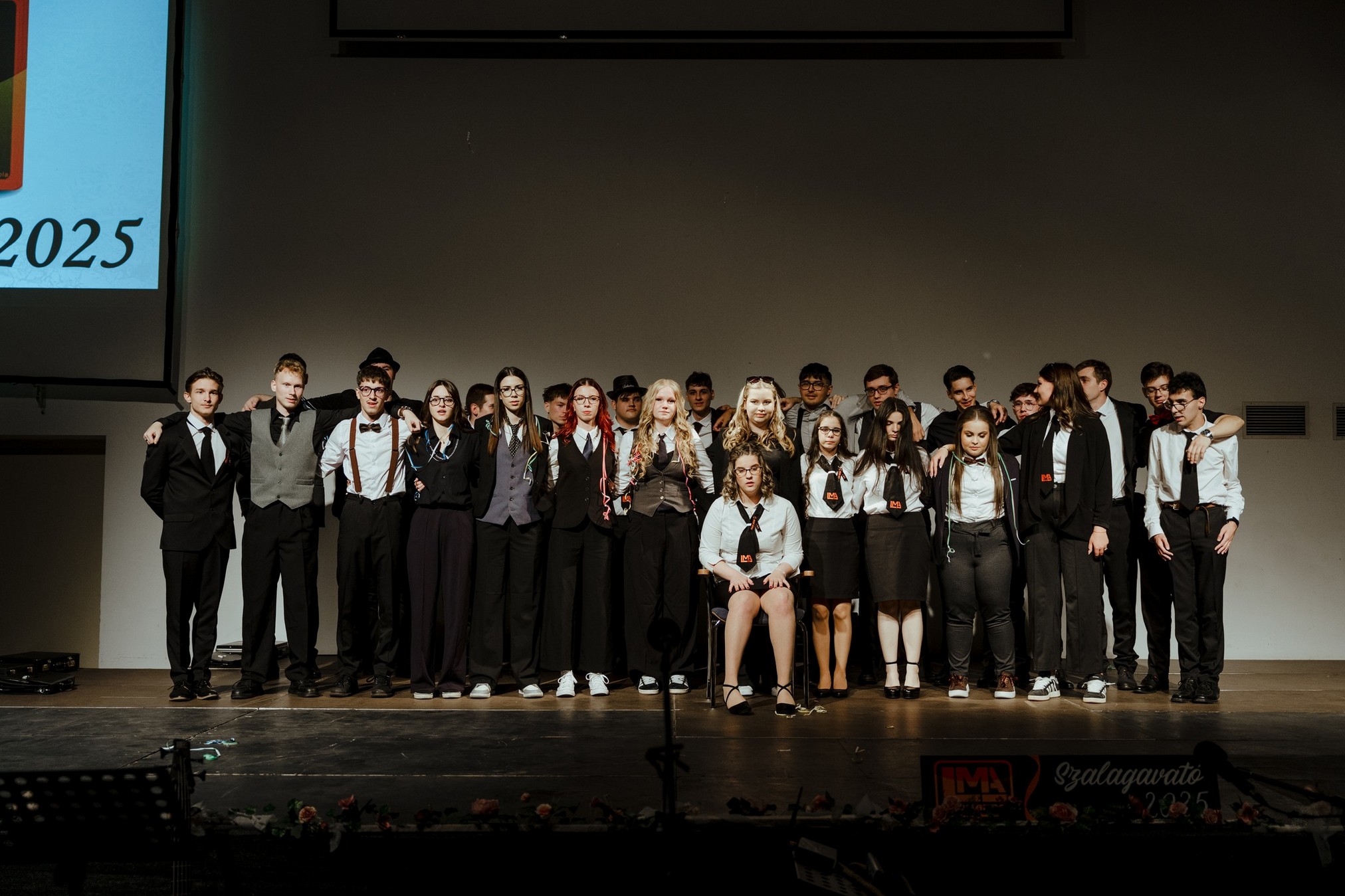 A szeretet és soha nem múló támogatás kifejezéseként pedig a 12. A osztályfőnöke, Bókáné Balmaz Ágnes felvételről szóló zongorajátéka töltötte meg az iskolánk szakgimnáziumi pedagógusai és tanulói által szemet gyönyörködtető díszbe öltöztetett Zilahi termet a szalagtűzés alatt. A diákok gyermekkori és jelenkori arcképe a háttérben érzékeltette az idő múlását, hogy bár felnőttek, a változás szükségszerű, szüleik és tanáraik szívében megmaradnak örökre kíváncsi gyermeknek.
