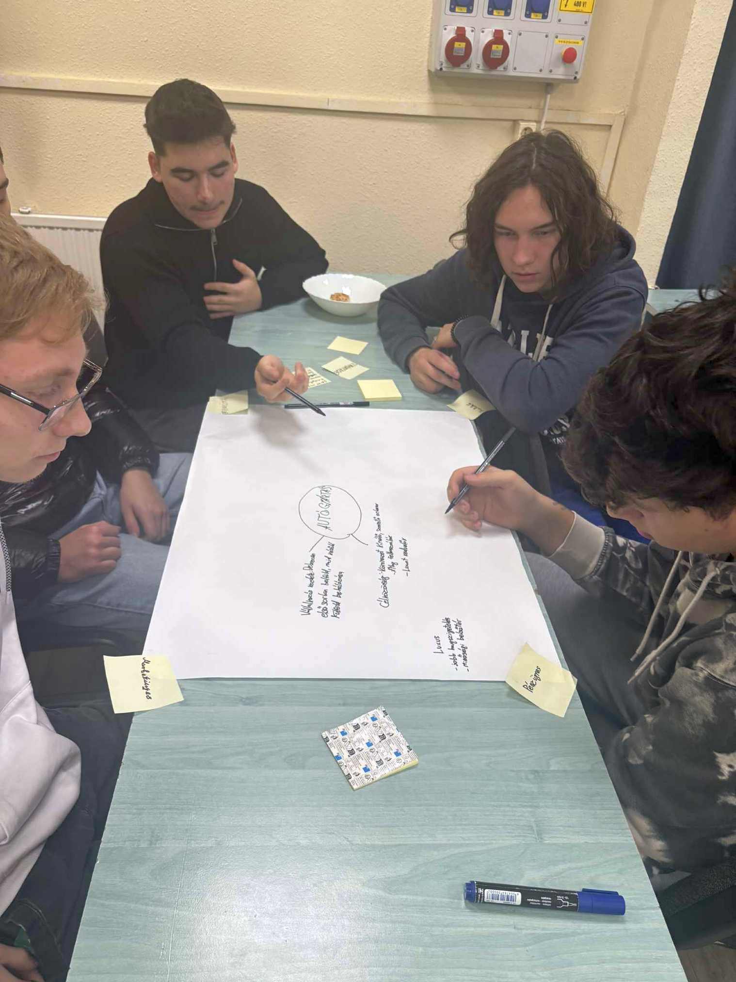 A foglalkozáson kiscsoportokban dolgoztak, átgondolták egy vállalkozás alapvető kérdéseit: