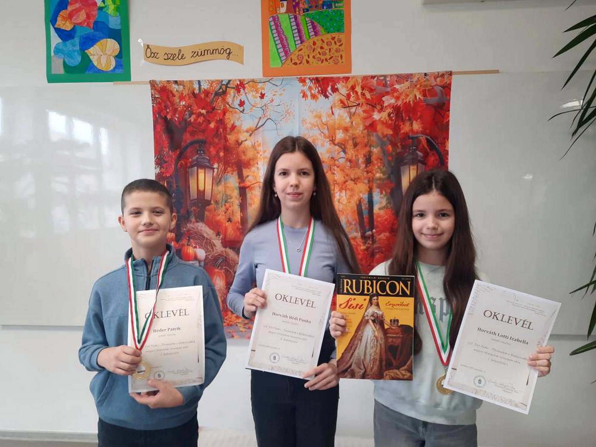 A tesztlapok kitöltését követően a versenyzők és kísérő pedagógusaik kastély-és templomlátogatáson vettek részt. Iskolánk tanulói igen szép eredményekkel büszkélkedhetnek. 5. évfolyamon Héder Patrik 1. helyezést ért el, Ari Zsombor is sikeresen szerepelt. 6. évfolyamon Horváth Lotti Izabella évfolyamának legjobbja lett, Mocsár Zsolt pedig a 4. helyen végzett.