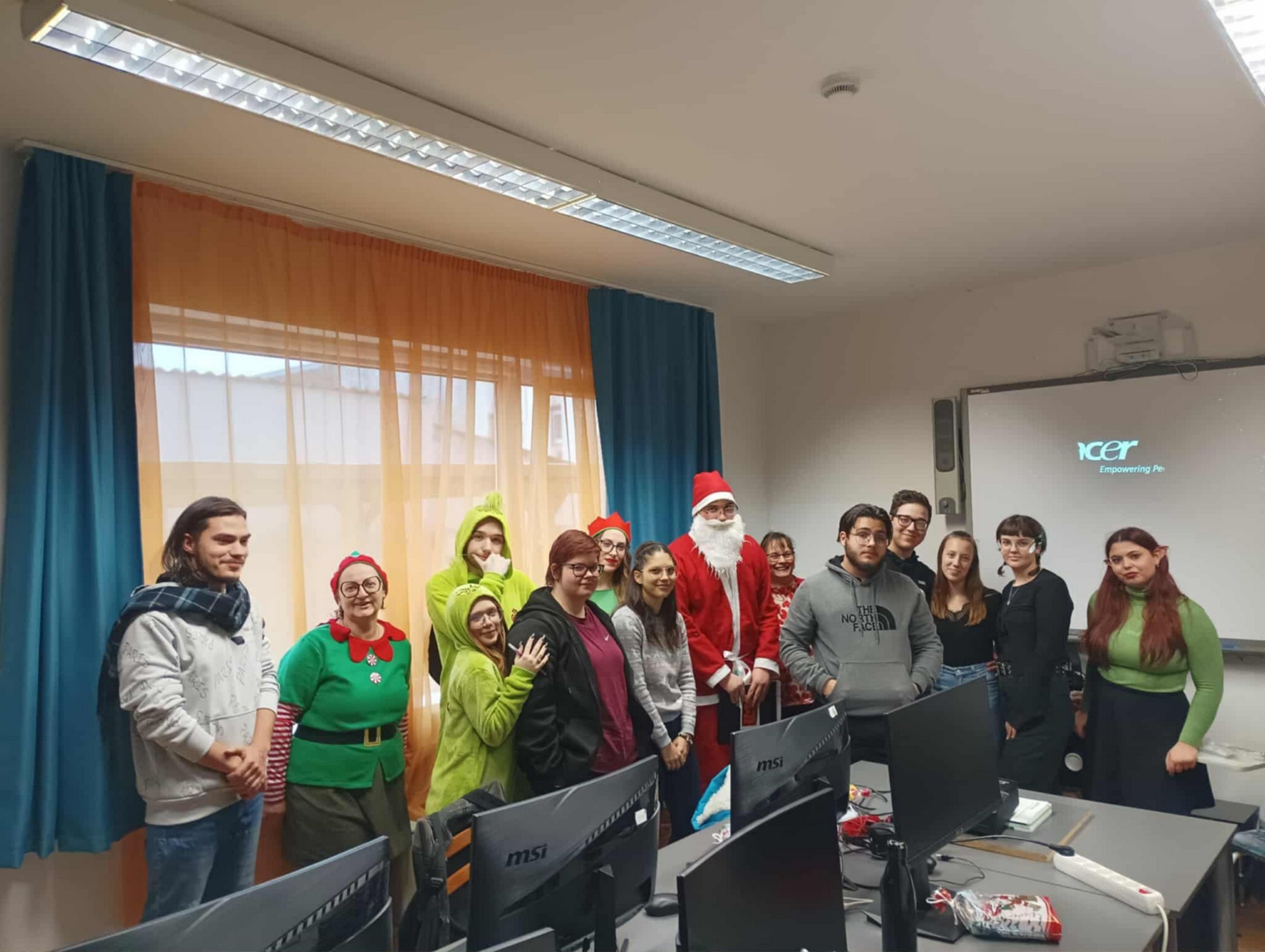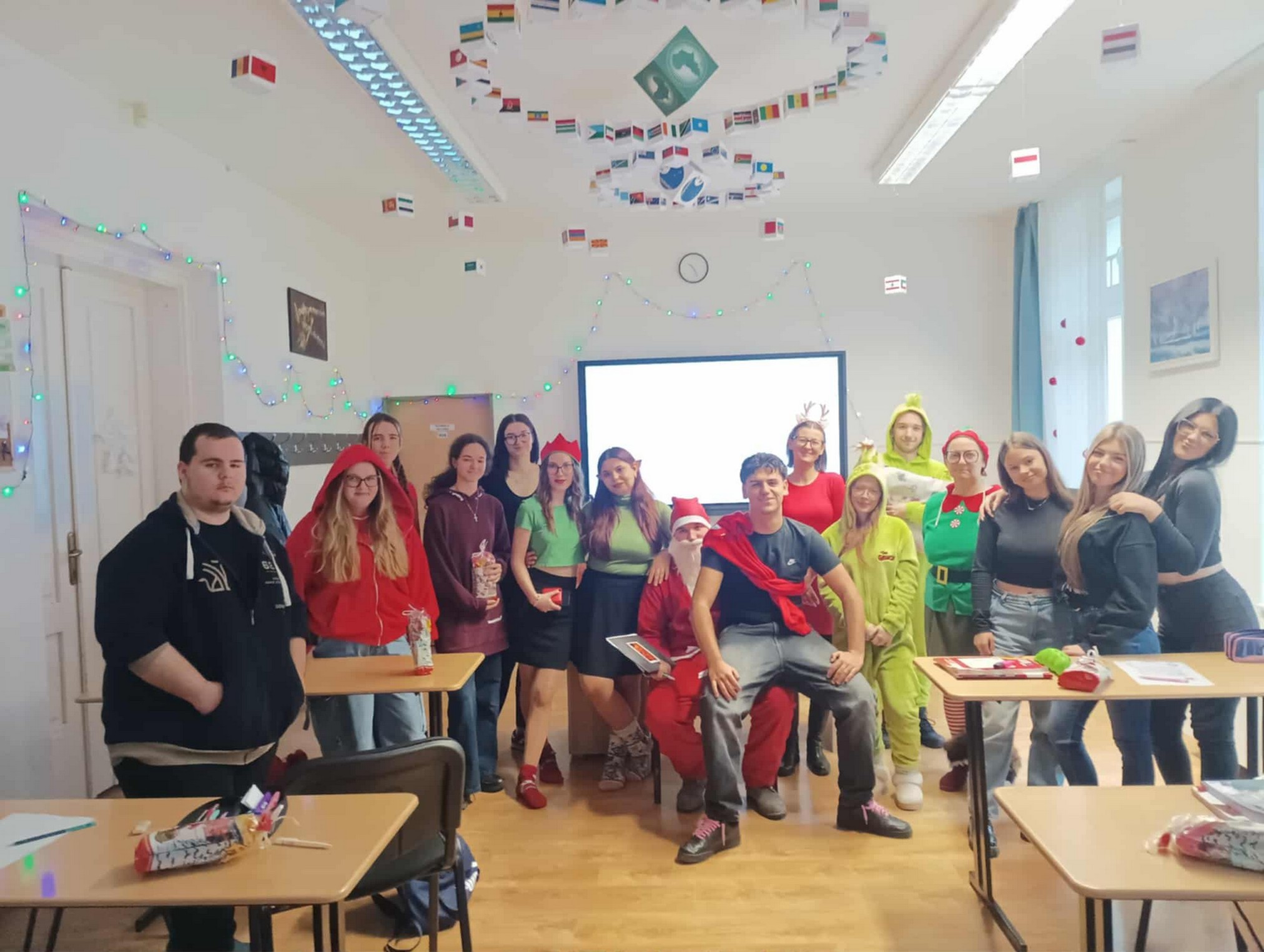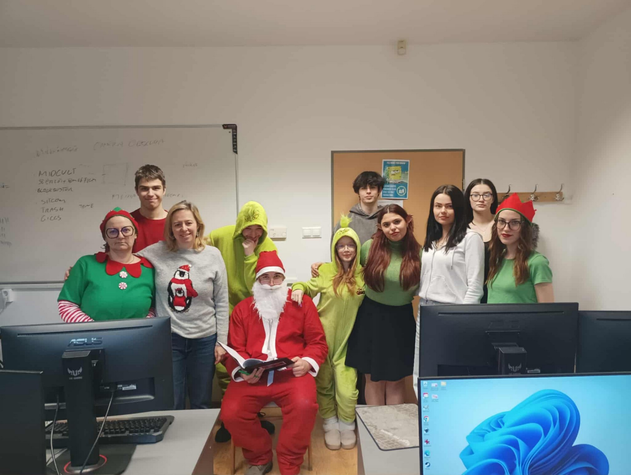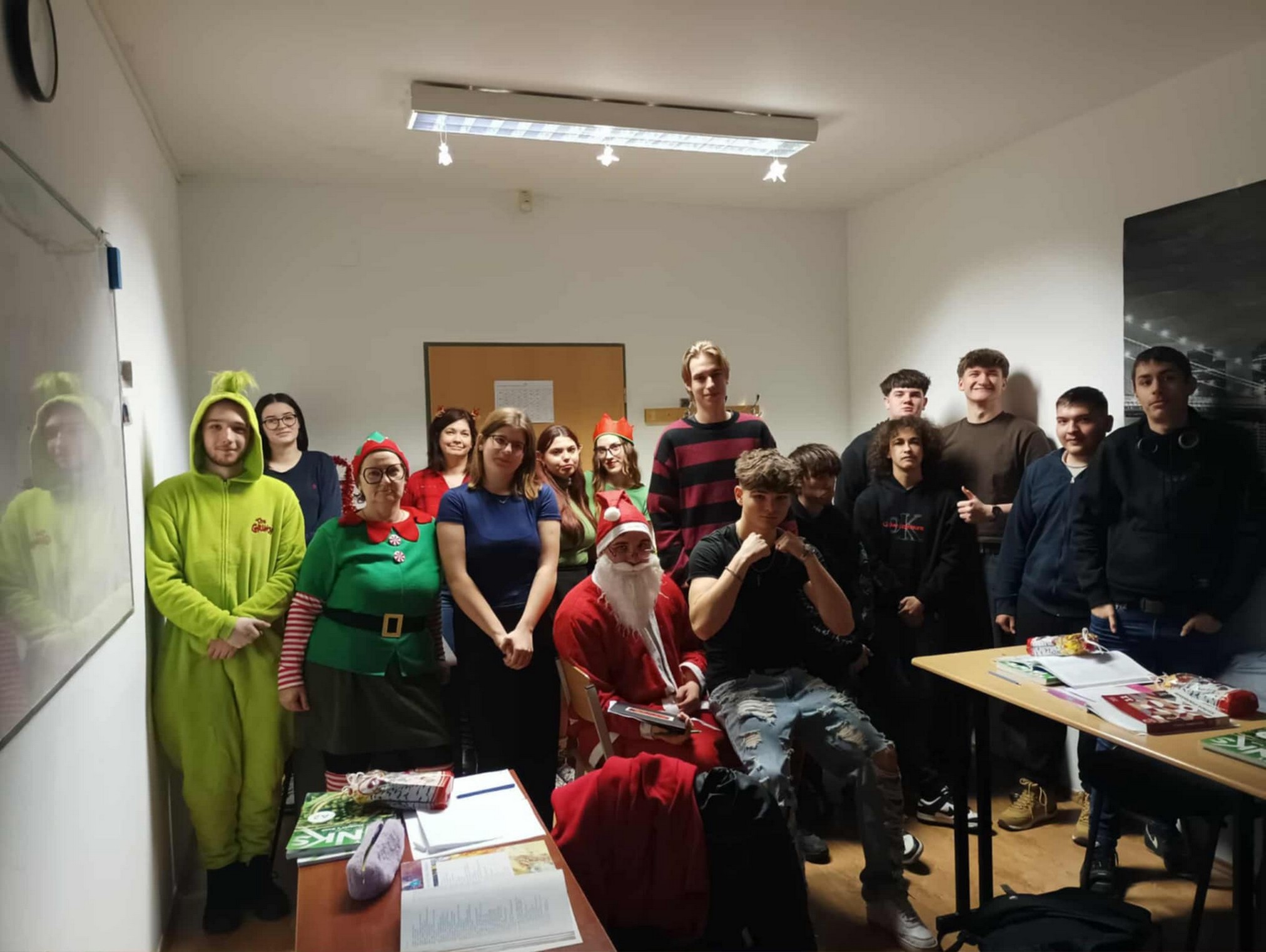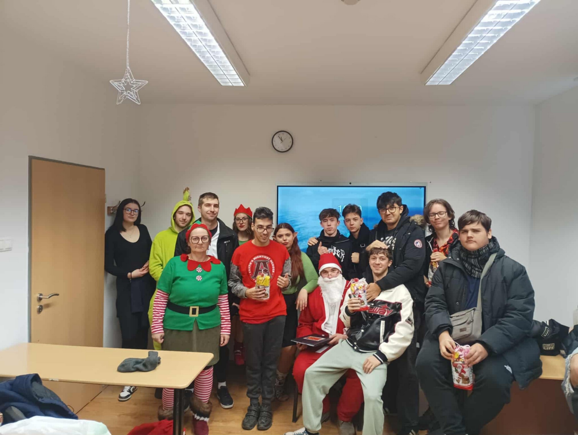 A Mikulást ezúttal sem hagyták magára: vele tartottak a vidám manók, a csintalan grincsek és a mókás krampuszok is, akik folyamatosan gondoskodtak a jókedvről és a nevetésről. A diákok énekszóval csalogatták be a Mikulást, a folyosókat pedig egész nap ünnepi hangulat töltötte be. A tanárok is kivették részüket a mókából – ismét beöltöztek a gyerekekkel együtt, így valódi ünnepi kavalkád fogadta a Mikulást.