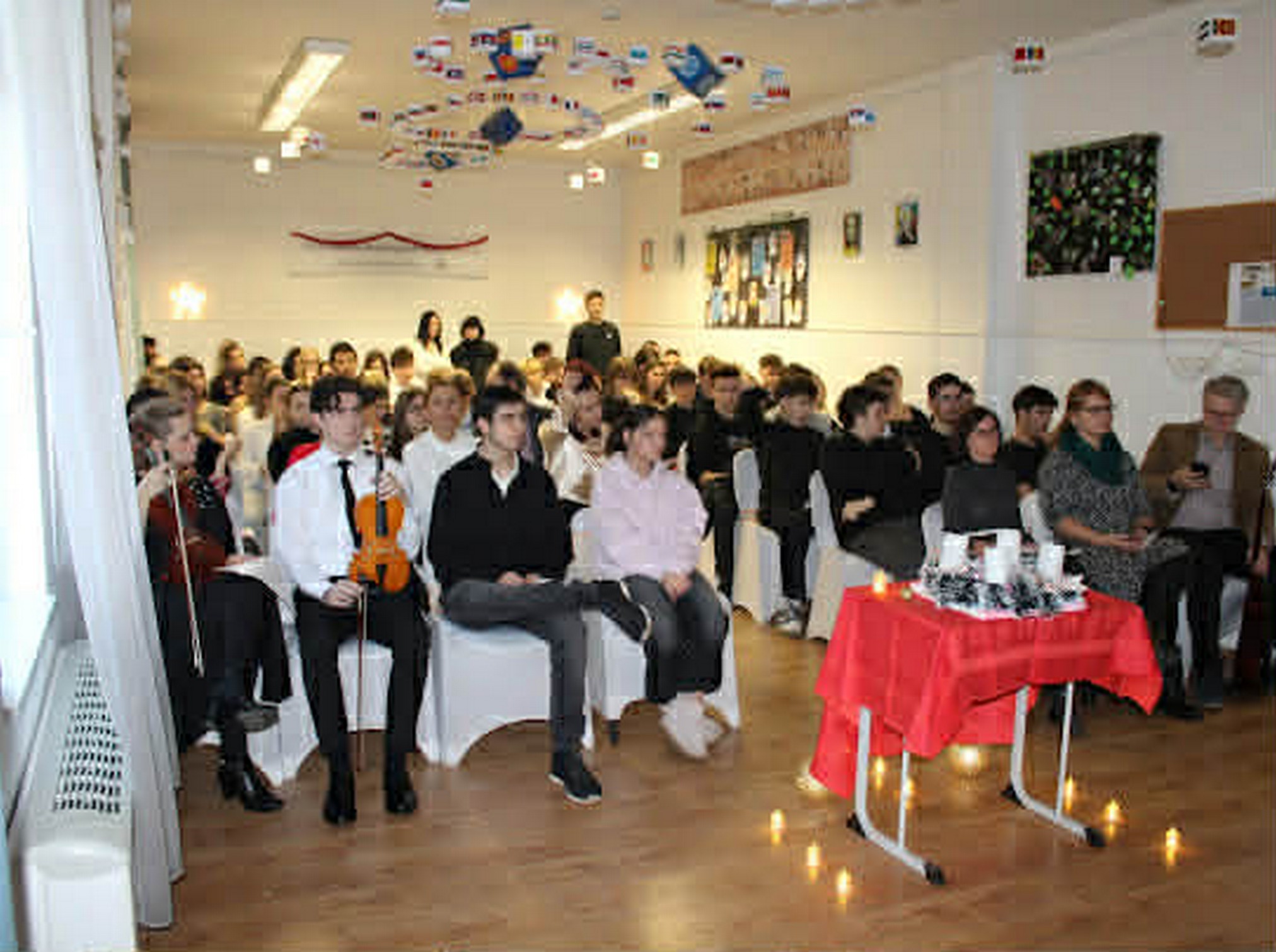 Meghitt hangulatú karácsonyi ünnepség részesei lehettünk, ahol a 9. A osztály kedves műsorával ajándékozott meg bennünket. Az ének és a hegedűszó különleges, bensőséges pillanatokat teremtett. Az osztály szívből jövő módon kívánt mindenkinek boldog karácsonyt.