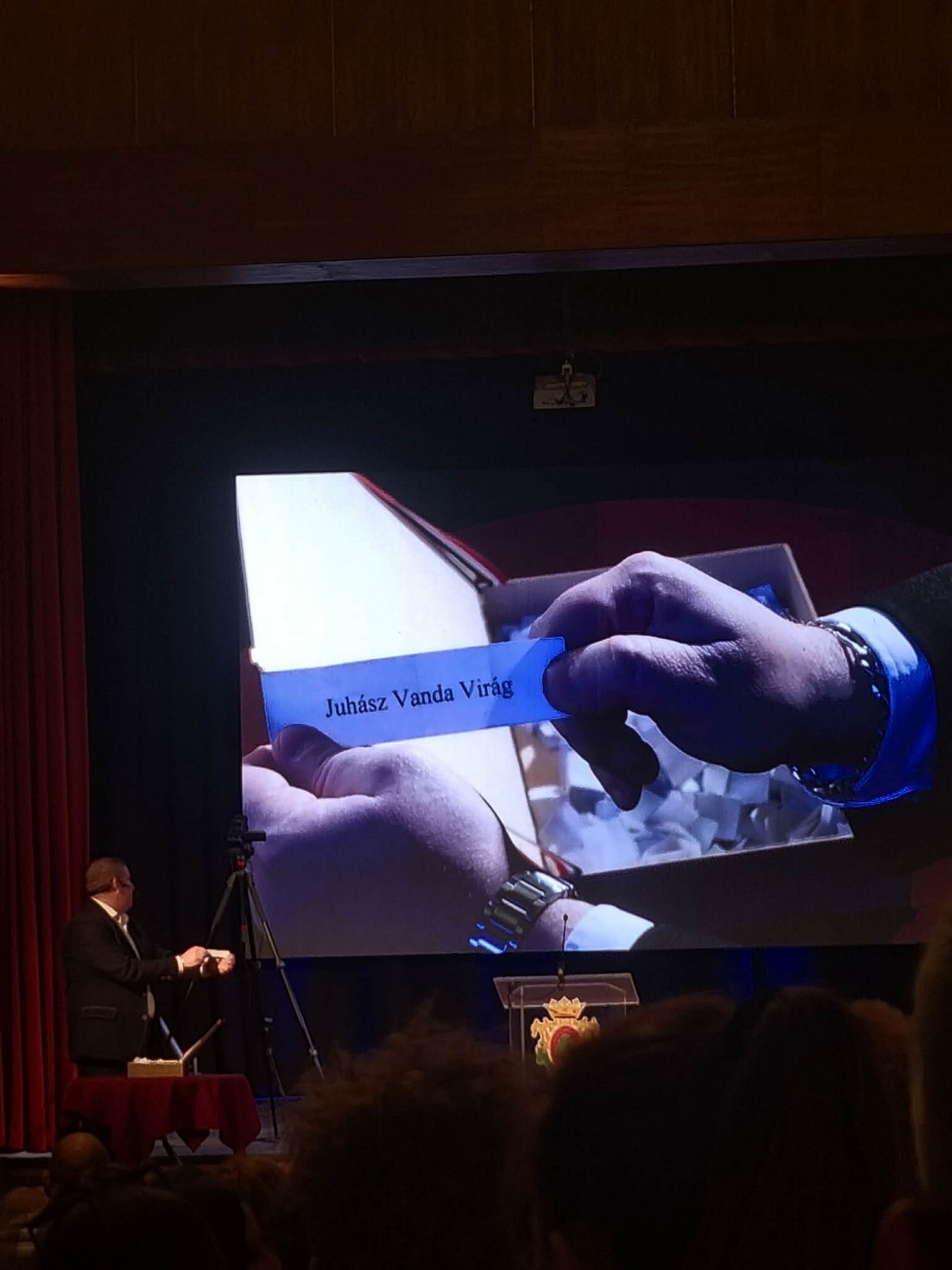 Másnap Vanda a Nagykőrösi Református Gimnázium dísztermében adta elő Arany János Ágnes asszony című balladáját. Bár a szigorú rostán – ahol a 200 indulóból mindössze 16-an jutottak a döntőbe – ezúttal nem került a helyezettek közé, teljesítményére rendkívül büszkék vagyunk: magabiztosan, felkészülten és méltón képviselte iskolánkat ebben az erős mezőnyben.