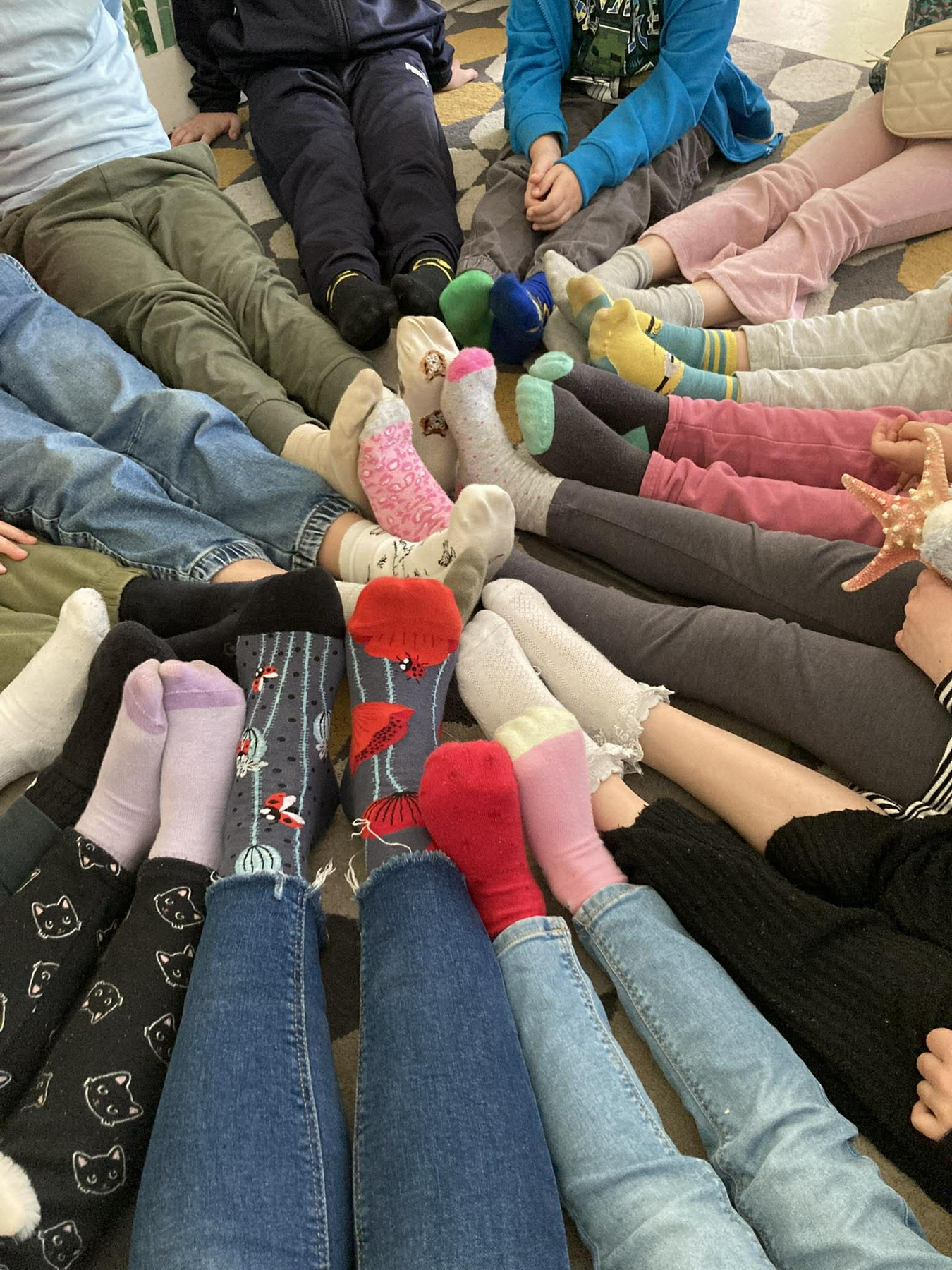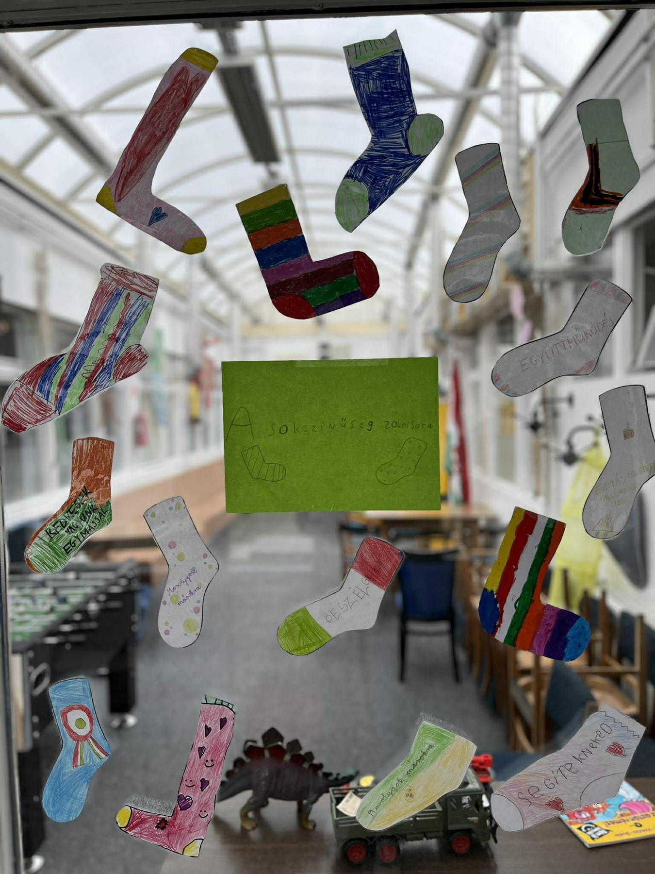Az elfogadást és az egyenlő bánásmódot iskolánkban kiemelten fontosnak tartjuk, ezért a mai napon mi is felemás zokniba bújtunk, a gyerekek pedig színes zoknikat rajzoltak. ![]()