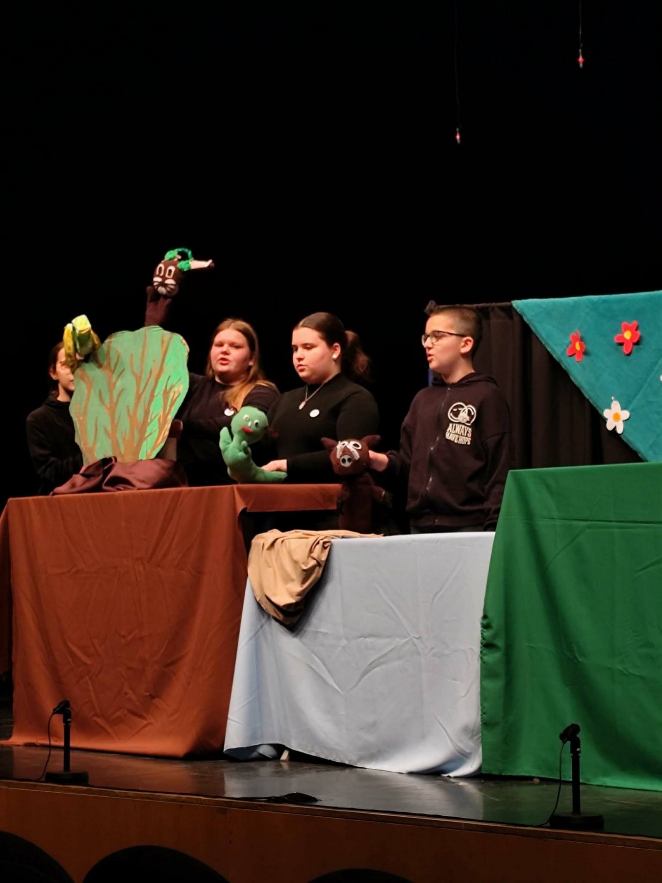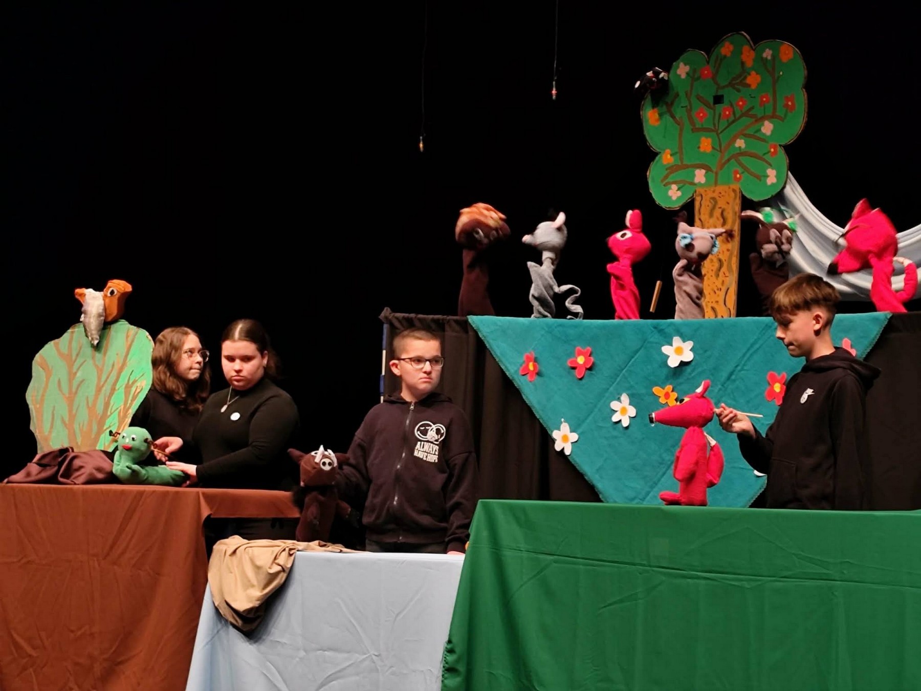 Az előadás nemcsak a gyerekek, hanem a felnőttek körében is nagy tetszést váltott ki, bizonyítva, hogy a bábművészet időtlen, és minden korosztály számára élvezhető. Bábosainkkal ezúttal egy igen modern történettel készültünk, amely tele volt humorral, izgalommal és tanulságos pillanatokkal. Az előadásunk címe: Az erdő netinfluenszere A gondosan kidolgozott bábok, a látványos díszlet és a szívhez szóló zenei aláfestés együtt teremtették meg azt a különleges hangulatot, amely teljesen magával ragadta a közönséget. A szolnoki rendezvény kiváló lehetőséget biztosított arra, hogy a csoport megmutassa fejlődését és elhivatottságát. A szakavatott zsűri a munkánkat arany fokozatú oklevéllel díjazta, valamint két különdíjban is részesült a bábcsoportunk.