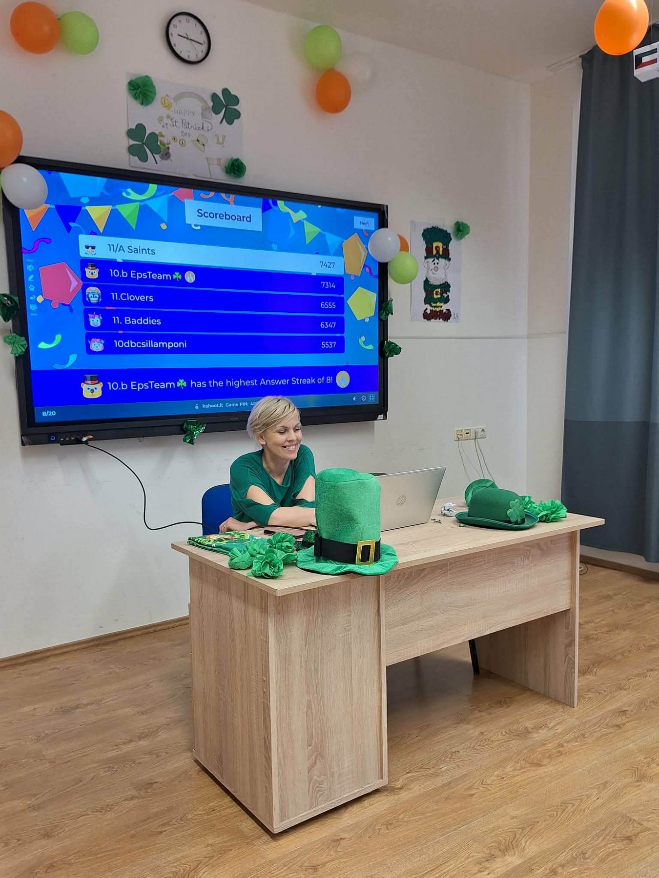 Március 20-án hagyományainkhoz híven iskolánkban - az angolszász kultúrkörhöz kapcsolódóan- egy tartalmas nap keretében emlékeztünk meg Írország védőszentjéről! Idén nem csak diákjaink, hanem a tantermek is zöldbe öltöztek.