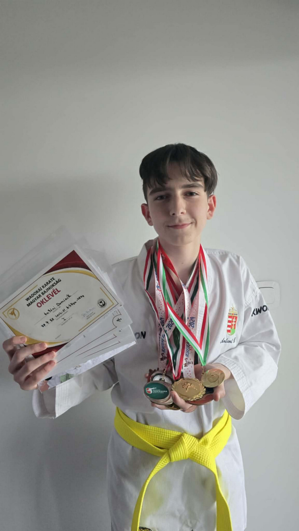 Dominik sportpályafutása már korábban is figyelemre méltó volt. 2023-ban kezdte el a Karate Wado-ryu harcművészetet, ahol rövid időn belül komoly sikereket ért el kumite (küzdelem) kategóriában. 2024-ben Magyar Bajnok lett, amellyel kvalifikálta magát az Európa-bajnokságon való részvételre. 2025 szeptemberében sportágat váltott, és új szenvedélye a taekwondo lett. Már az első versenyén, mindössze két hónappal később, a Budapesti Olimpiai Központ (BOK) Csarnokban megrendezett megmérettetésen 2. helyezést ért el. Gratulálunk Dominiknak az eddigi eredményeihez, és további sok sikert kívánunk sportolói pályafutásához! ![]()
